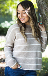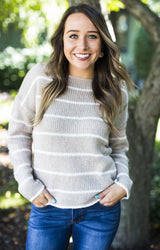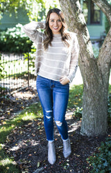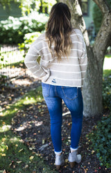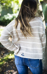 Taupe Striped Destroyed Sweater