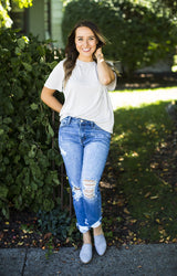 Who doesn't love a good basic?! We're obsessed with the material on this round neck tee. Available in 3 great colors!